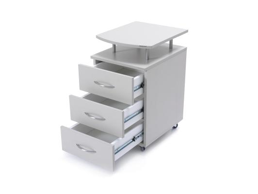 Прикроватная тумбочка DLHM 4521 — идеальное решение для медицинских палат. Она оснащена компактной столешницей и ящиками для хранения. Корпус из прочного меламина, металлическая ручка и четыре колесика обеспечивают легкость перемещения. Надкроватный столик добавляет удобство, делая тумбочку функциональным и стильным элементом интерьера.