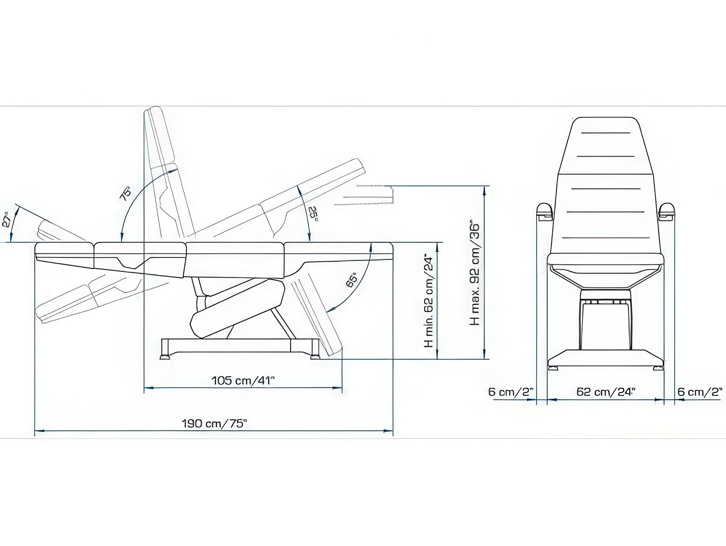 | Угол наклона секции ног | 65° |