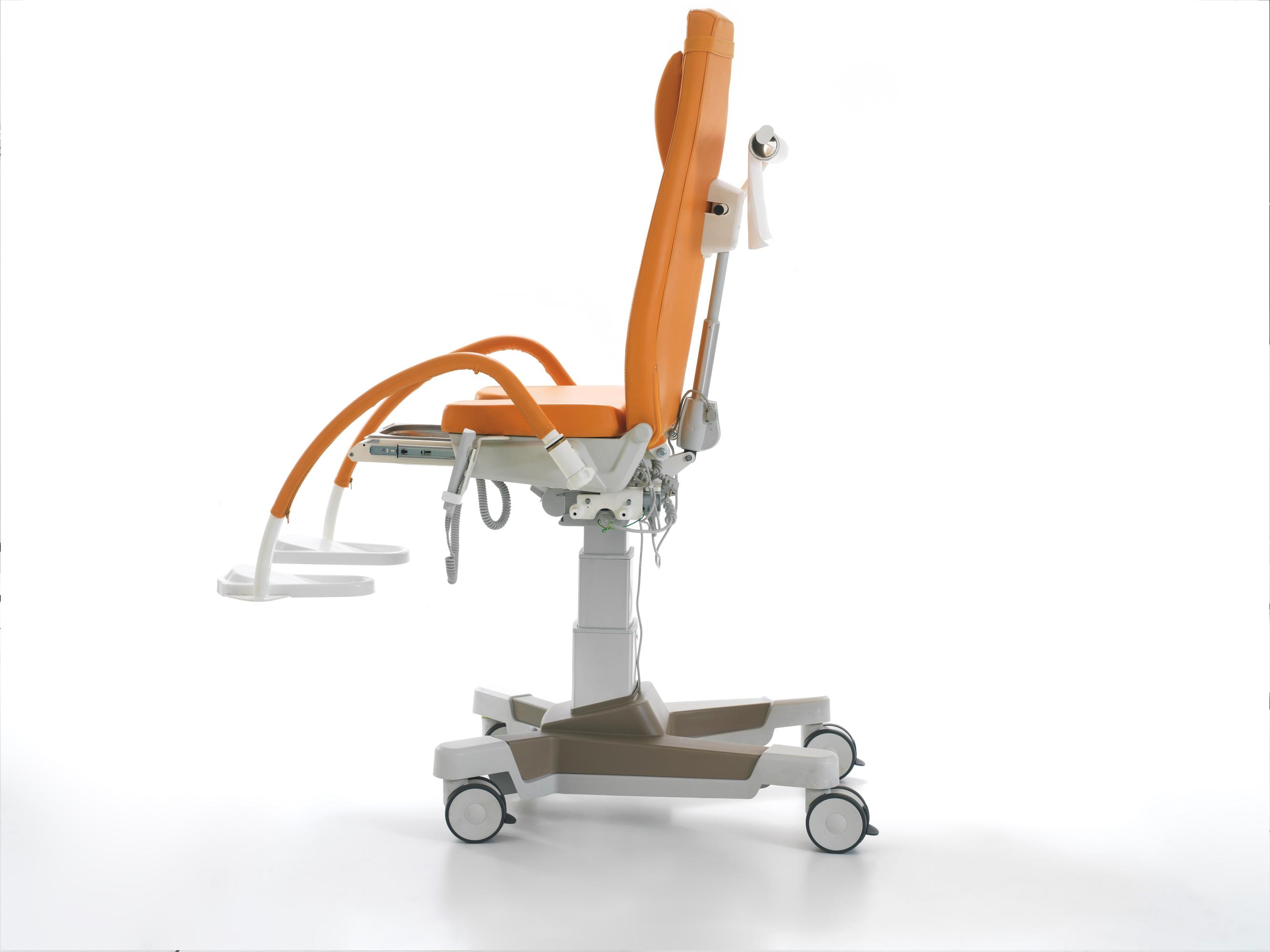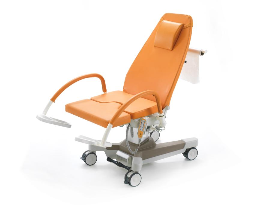 Гинекологическое кресло JMM 04 предназначено для гинекологических и урологических осмотров, а также простых операций. Оно оснащено четырьмя электромоторами. Размер кресла составляет 682 x 840 x 520 mm, угол наклона спинки — 75°, а Тренделенбург — 13°.