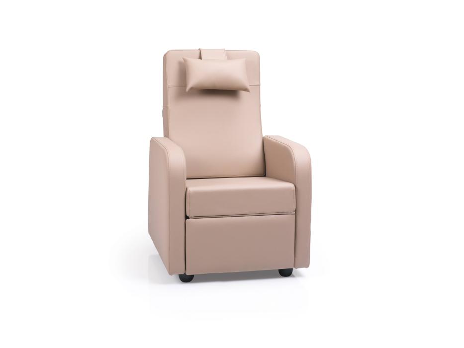 Кресло легко раскладывается благодаря прочному и долговечному механизму, что делает его удобным в эксплуатации. Подушка на подголовнике добавляет дополнительный комфорт, позволяя пациентам расслабиться во время процедур.