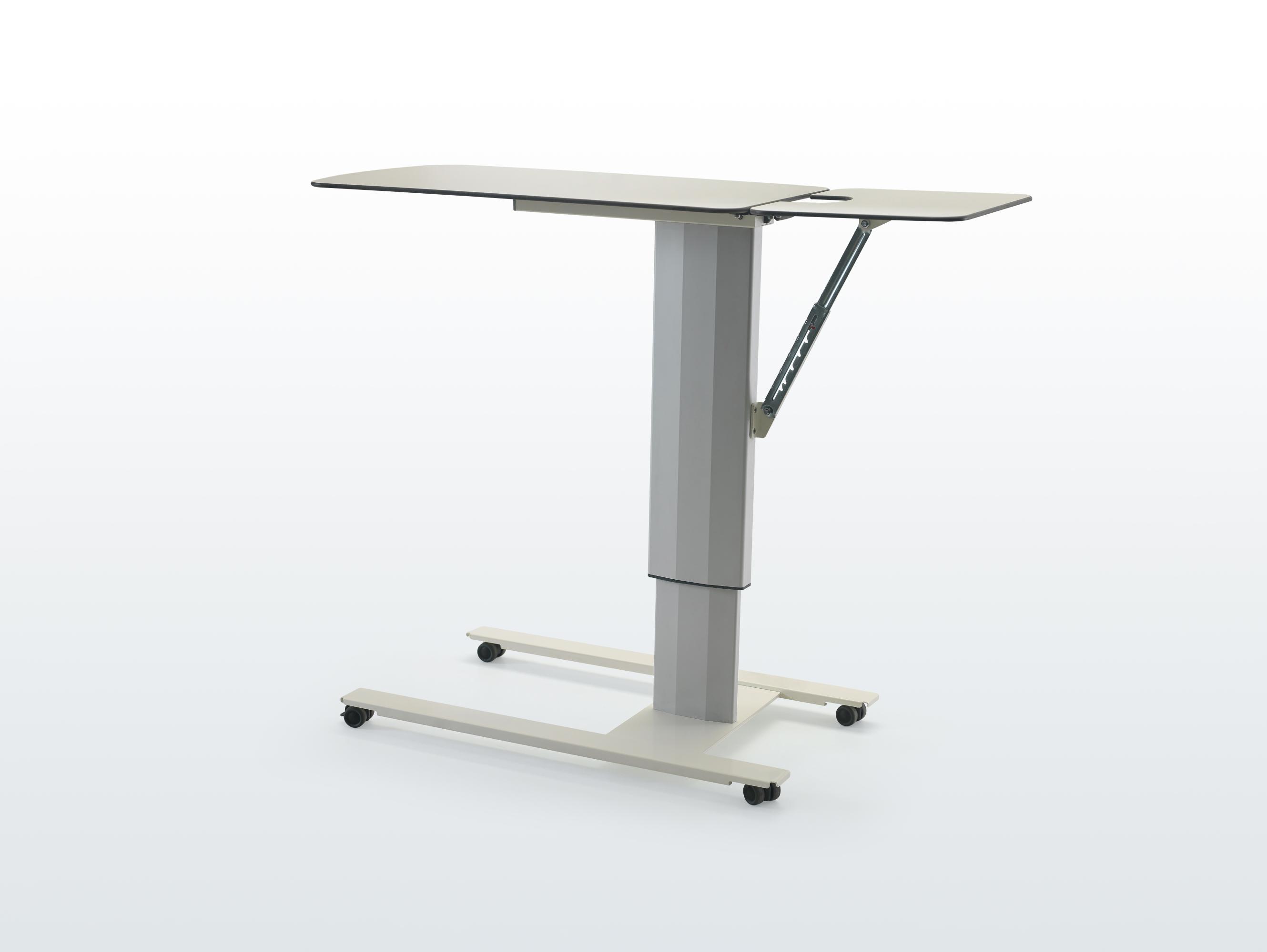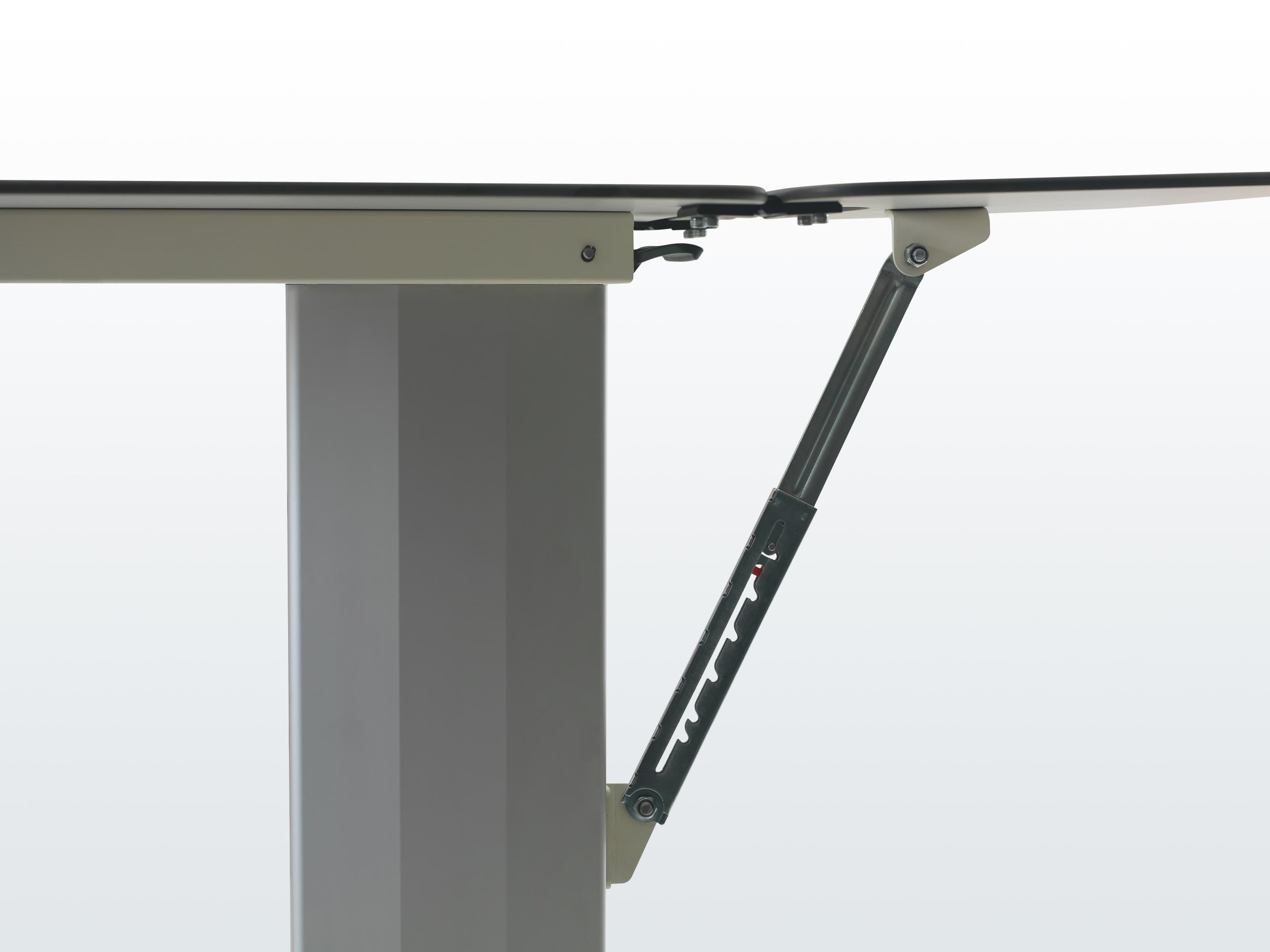 Уникальная конструкция включает в себя небольшой складной столик, который увеличивает рабочую поверхность, добавляя функциональности. Высота столика NCYM 1007 регулируется вручную с помощью удобного рычага, расположенного под столом, что позволяет легко адаптировать его под индивидуальные потребности пользователей.