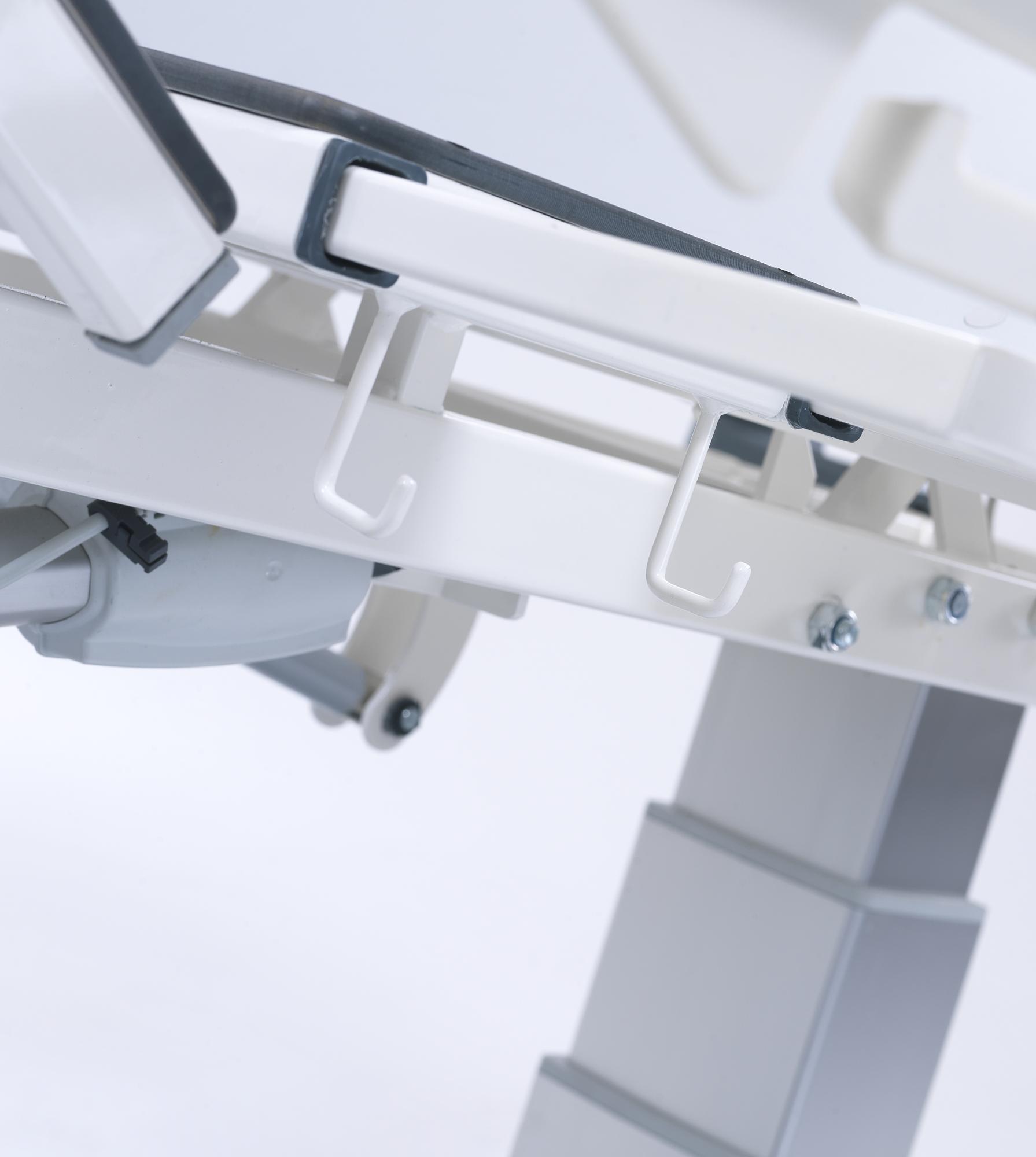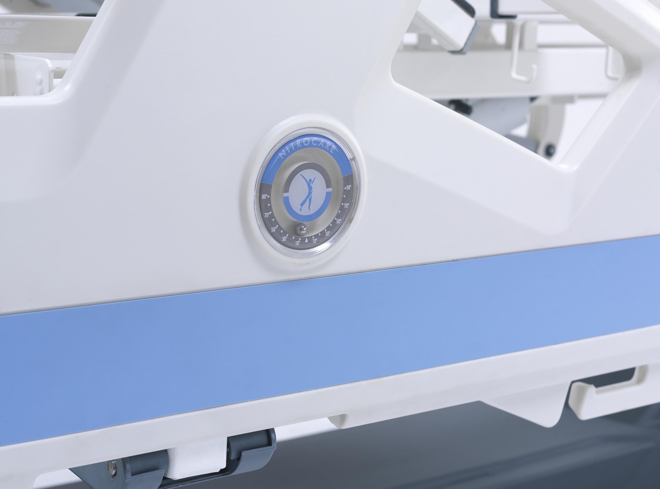 Кровать имеет регулируемую высоту в диапазоне 505–905 mm, что позволяет легко адаптировать ее к потребностям пациента и медперсонала. Тренделенбург и обратный Тренделенбург (18°/17°) улучшают кровообращение и облегчают лечебные процедуры. Металлические части имеют электростатическое покрытие, устойчивое к агрессивной дезинфекции.
