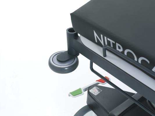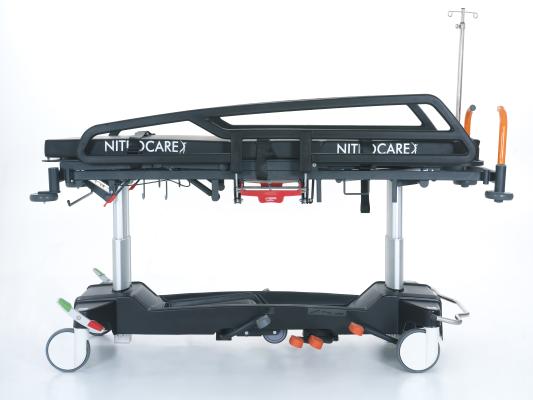 Каталка поддерживает положение Тренделенбурга и обратного Тренделенбурга (до 12°), а рентгенопрозрачная зона в области головы и ног позволяет проводить диагностику без перемещения пациента. Грузоподъемность 250 кг, колеса диаметром 200 mm с центральной тормозной системой обеспечивают маневренность и стабильность. Металлические части покрыты электростатической краской, что делает каталку устойчивой к агрессивным дезинфицирующим средствам.