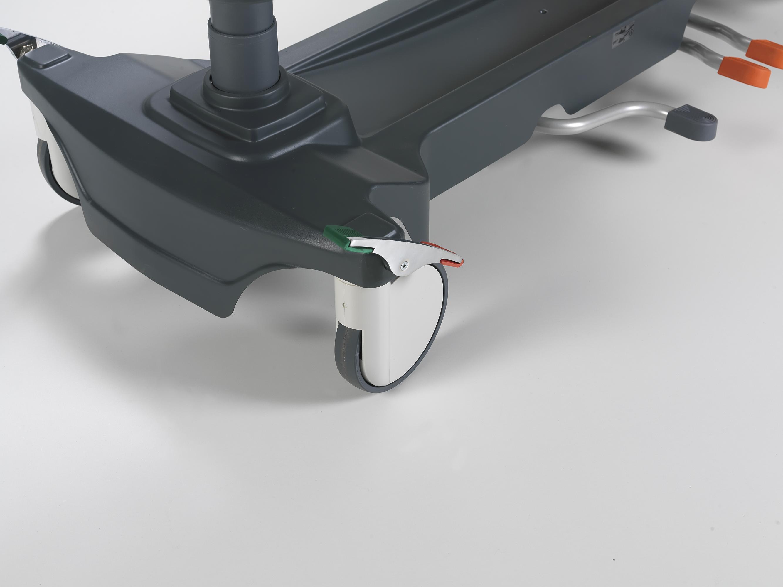 Усиленная конструкция каталки NTCR SD05 выдерживает нагрузку до 250 кг, а колеса диаметром 200 mm с центральной тормозной системой обеспечивают маневренность и стабильность даже в динамических условиях.