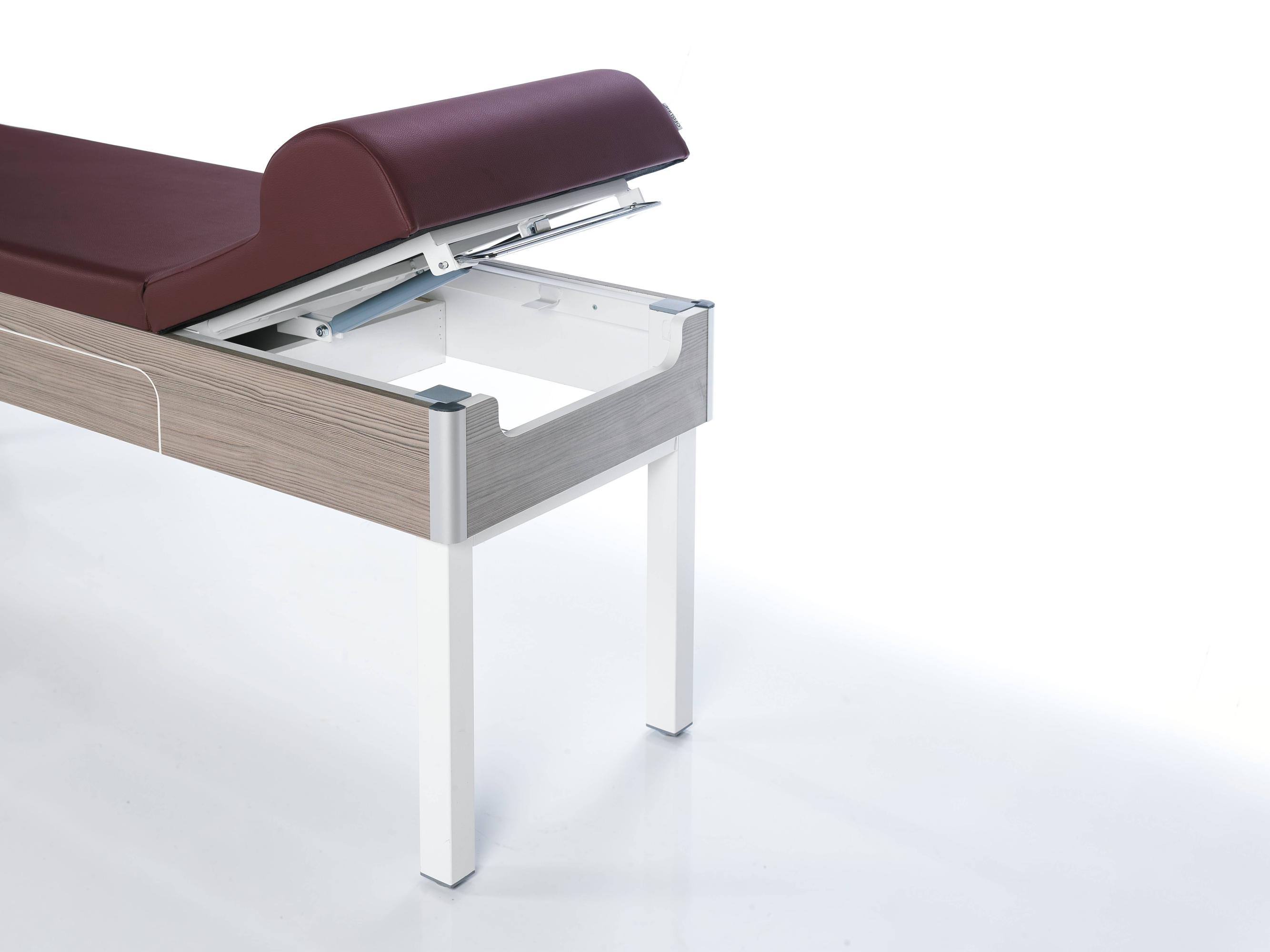 Прочный каркас из ДСП, металлические ножки и наполнитель из пенополиуретана обеспечивают комфорт. Обивка — ткань или искусственная кожа. Смотровая кушетка NTHM 095 — функциональный и стильный элемент для вашего рабочего пространства.