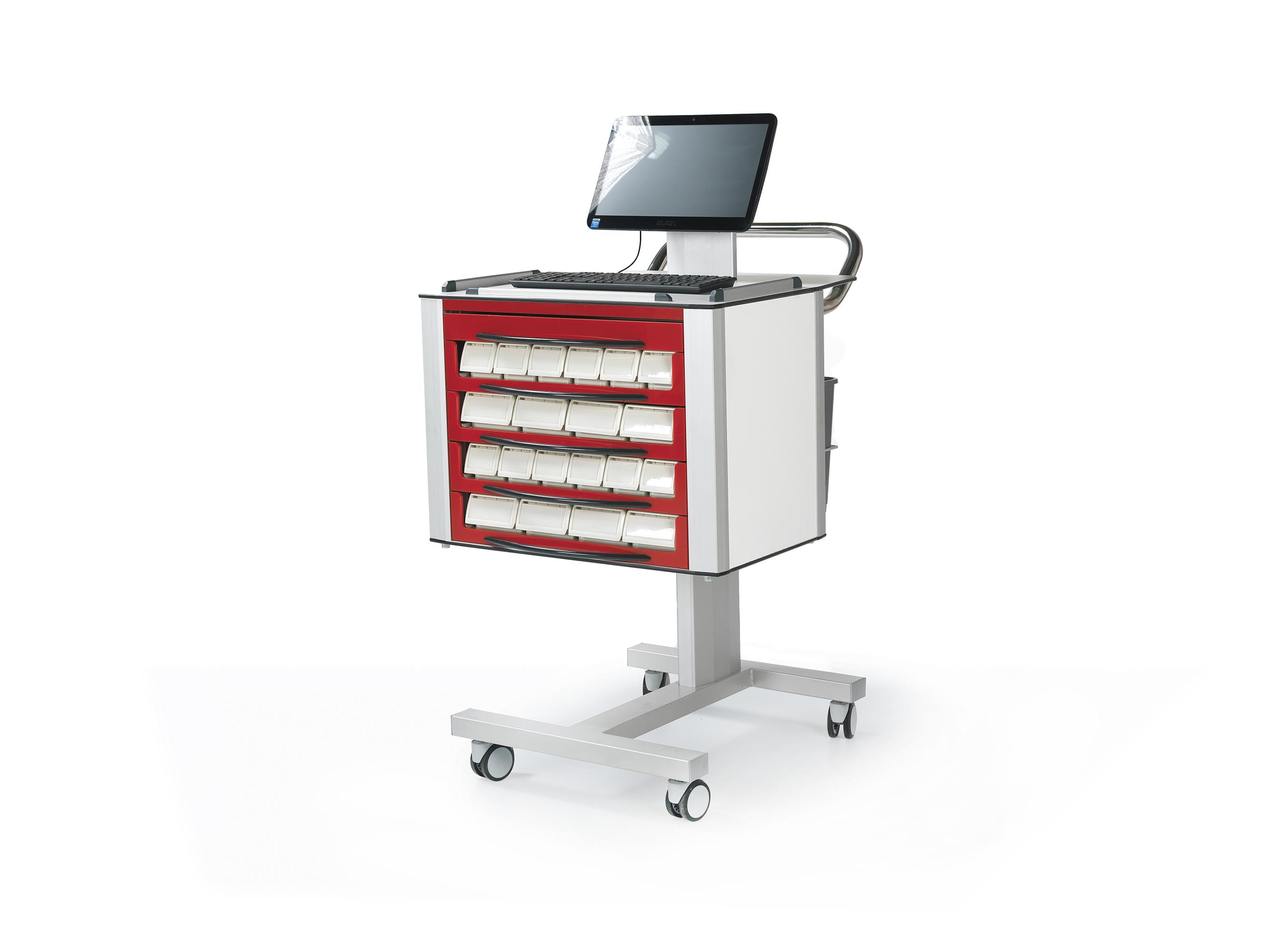 Четыре колеса диаметром 75 mm с поворотом на 360° обеспечивают отличную маневренность, а система торможения на двух колесах надежно фиксирует тележку на месте. Каркас из алюминия и верхняя полка из ABS пластика гарантируют прочность и легкость в уходе. Защитные бамперы предотвращают повреждения, а стол для сканера штрих-кода и стол для монитора добавляют функциональности, что делает тележку MT 118B незаменимым помощником в медицинских учреждениях.