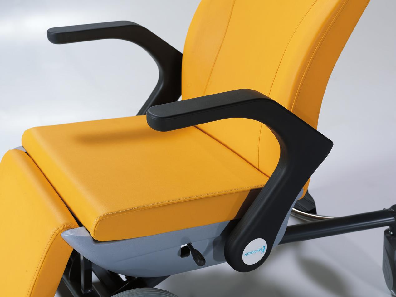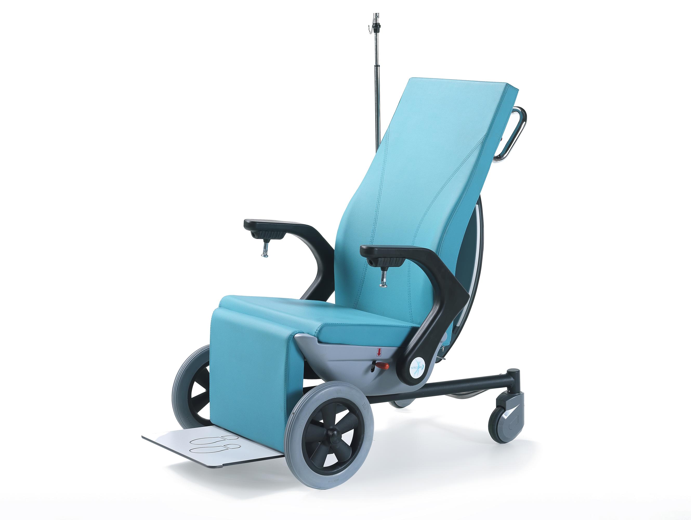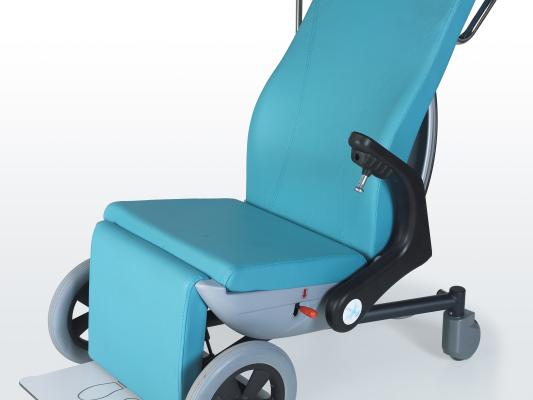 Кресло имеет регулируемые подлокотники, подставку для ног и телескопическую инфузионную стойку. Регулируемая спинка, съемный столик и подголовник делают его идеальным решением для комфортного перемещения пациентов.