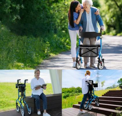 Оснащенные 8-дюймовыми вездеходными колесами, ходунки обеспечивают плавное движение по любой поверхности, как в помещении, так и на улице. Запатентованные блокирующие ручные тормоза гарантируют безопасную и контролируемую остановку, что особенно важно для пользователей.